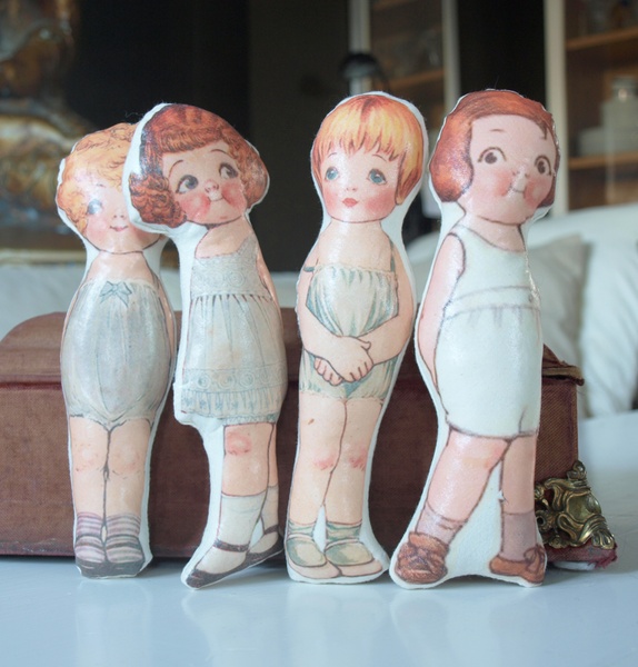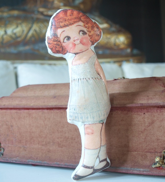 Tøydukke til lek eller pynt.Sydd av bomullstoff, fylt med vattretroprint av Dolly Dinglehøyde: 20 cm