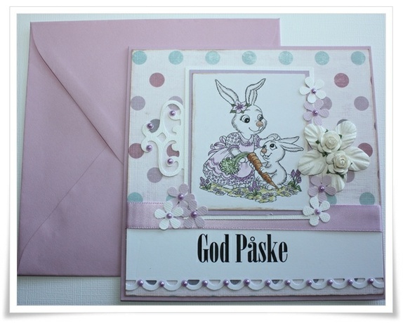 Kortet er i 13x13 str og levers med farget konvulutt som på bilder. Dette kortet er kun dekorert på forsidenstemplet er malt med hånd. Stemplet er fra karensdoodles.