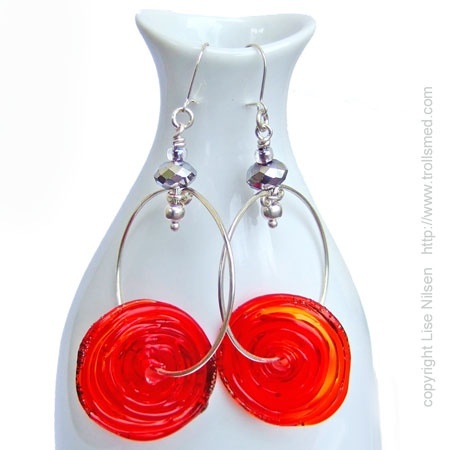 Håndlagde øredobber av sølv og håndlaget glass.