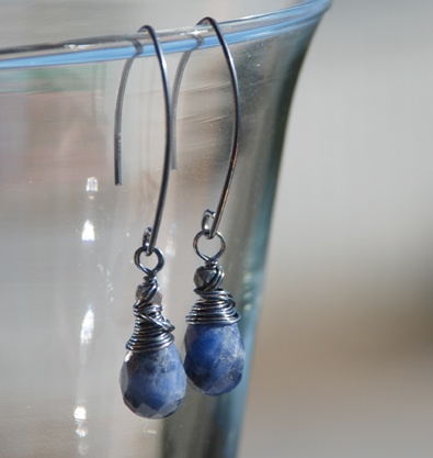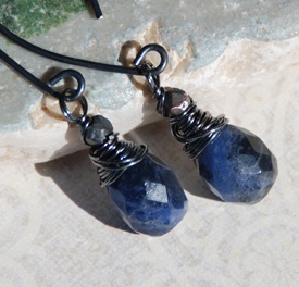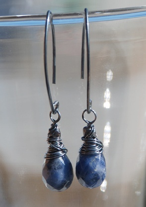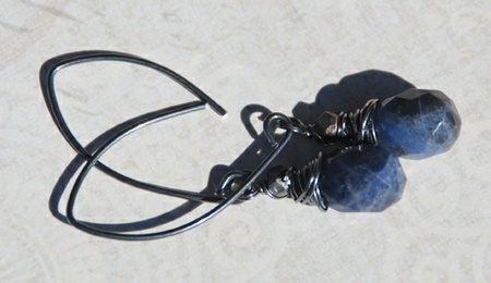 sodalitt, sølv, øredobber, øreringer, ørepynt, blå, sort