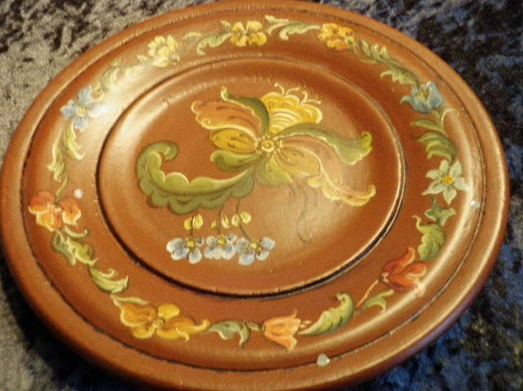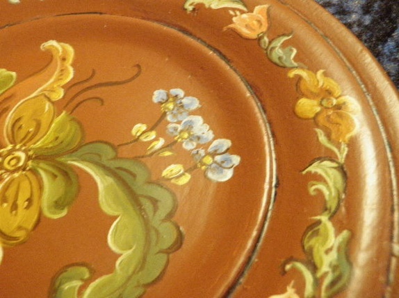 Rosemalt tallerken - bunnfarge bonderød22 cm i diam.