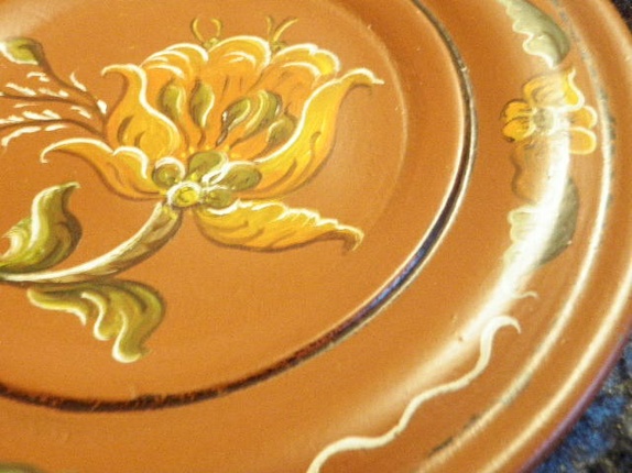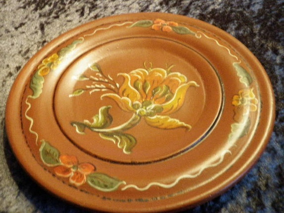 Rosemalt tallerken - bunnfarge bonderød22 cm i diam.