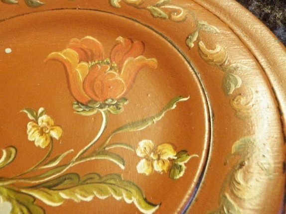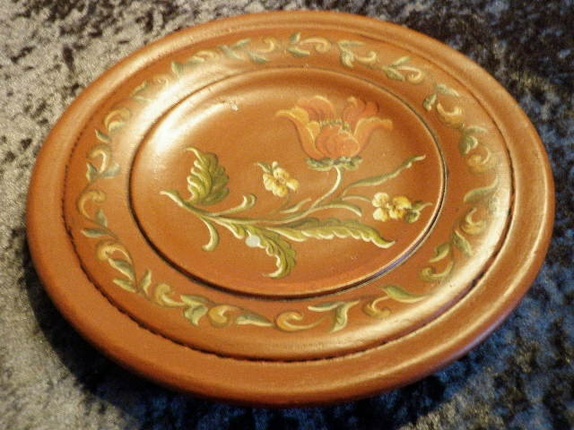 Rosemalt tallerken - bunnfarge bonderød22 cm i diam.