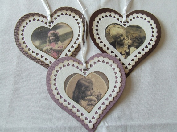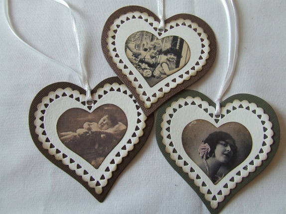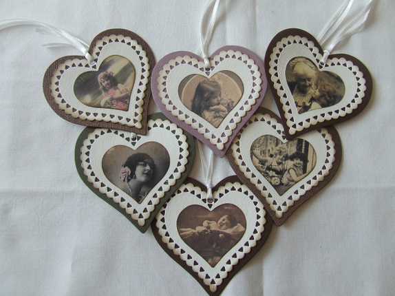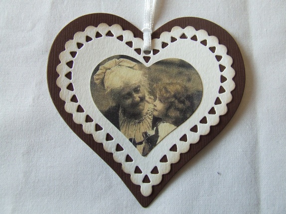Laget av bazzilkartong, akvarellpapir og vintagebilder. Kantene er svertet med brunt for å få en gammel "look"