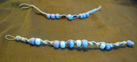 Armbåndet matcher fotlenke i hamp med lilla glassperler.