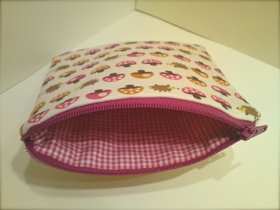 Liten pung laget i japansk bomull. Foret med rosa småruter (lille martinestoff)