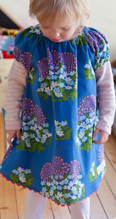 Kjole i str 4 år.Laget av gjenbrukstekstil.