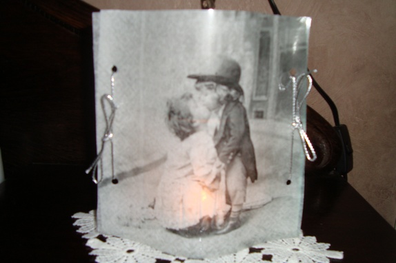 Sett skjermen over et kjøkkenglass med ett telys oppi.