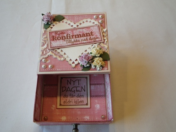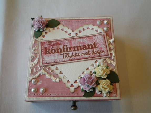 Stemplet tekst utenpå esken" Kjære konfirmant. Tillykke med dagen"