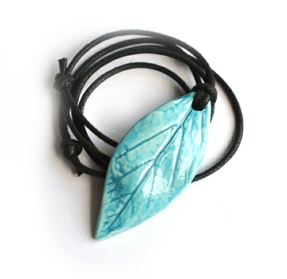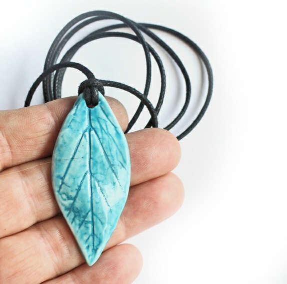 Et håndlaget porselensløv presset fra et skikkelig løv. Det er tørkes fast, og brent vekk, så i sannhet et unikt og håndlaget smykke.
