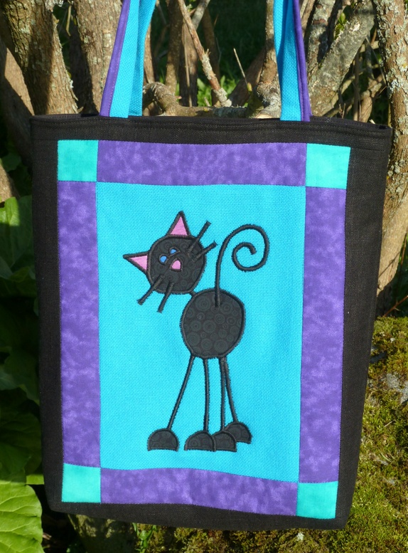 Frihandsbrodering med "kattaord" på baksida.