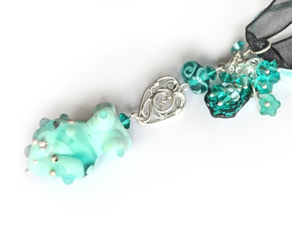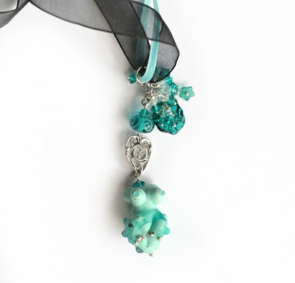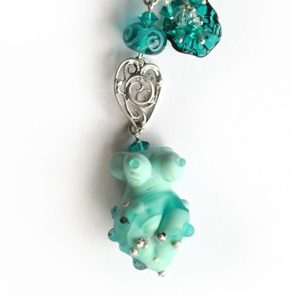 Sølv filigran, håndlaget glassblad og tsjekkiske perler.
