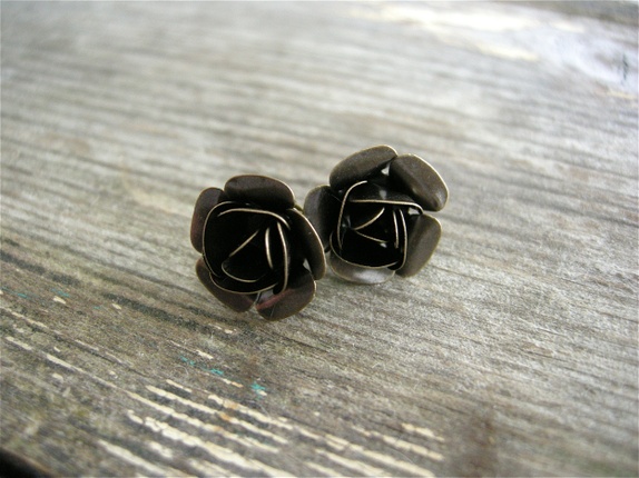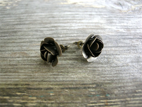 Vakre øredobber med rustikke kobber roser,bakdel i oksydert kobber.Limet er profesjonelt smykke lim og etterpå lagt i herder. Måler ca 1,5 cm diam.
