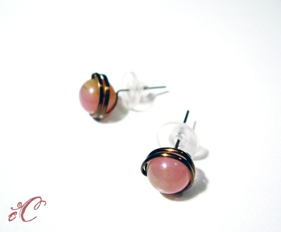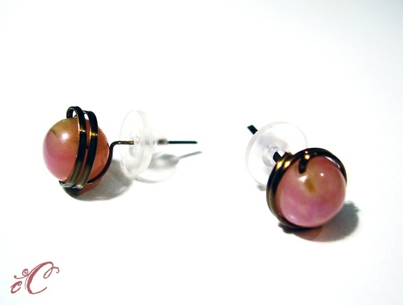 Lekker ørepynt i bronsefarget kobberwire med lekre, sommerlige stener av kirsebærfarget kvarts.