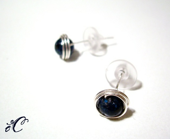 Mini ørepynt i 925 sterling sølv wire med apatitt, 6mm.Bakdelen er i plast som gjør at det ikke er lett å miste av ørepynten.