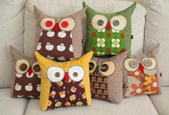 Ugla er ca 24 cm høy (fra ørespiss til bunnen), og gjør seg fint som en liten pyntepute i sofaen eler på et barnerom.
