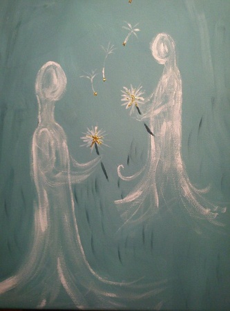 To som møter hverandre for første gang. De blåser på løvetann - frø...