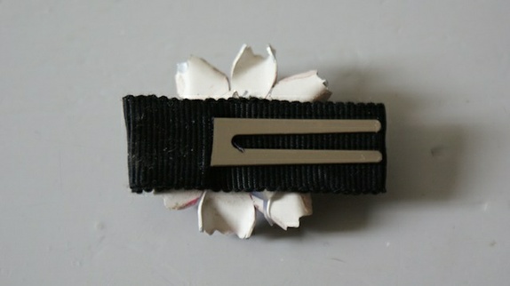 Hårklipp som er trukket med ripsbånd av bomull. Dekoren er forskjellige vintage ting. Spennen sitter godt i alle typer hår.