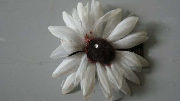 Vintage hatteblomst i organza. Blomsten måler 7 cm i diameter.