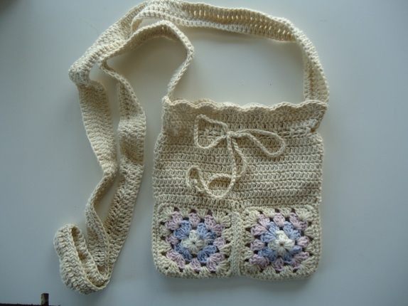 Søt liten veske heklet i cotton eco.samme mønster som mine mobilvesker.Eget design.