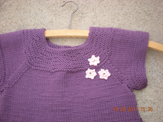 En skjønn, strikket tunika til søte små jenter, Garnet er en blanding av bomull og ull, som er behagelig mot huden.