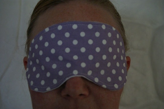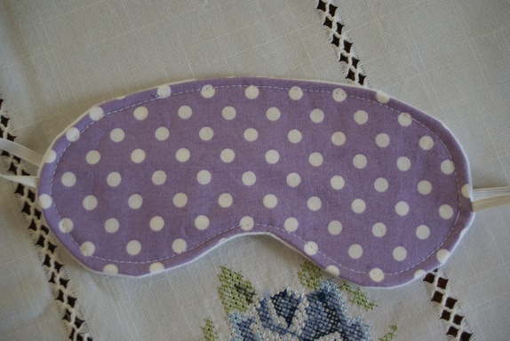 Festes med hvit flat strikk slik at masken sitter på plass.