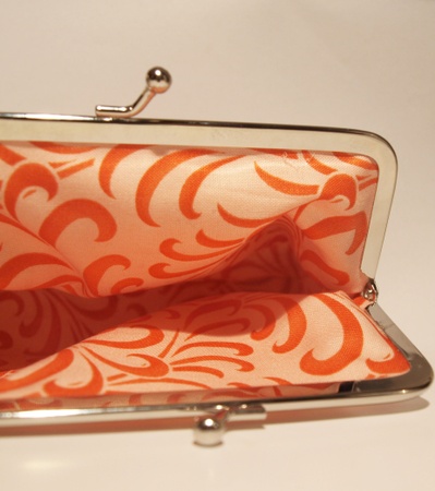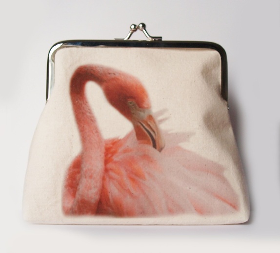 stor portemone/veske sydd i ubleket lerret,påstrøket flamingo motiv Foret med nydelig Fabric by Kate Spain for Moda.Vliselin mellom lagene.bredde: 16 cmhøyde: 14 cm