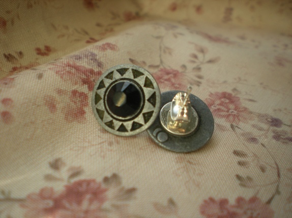 Øredobber med "solmønster", og sorte swarovski-stener.