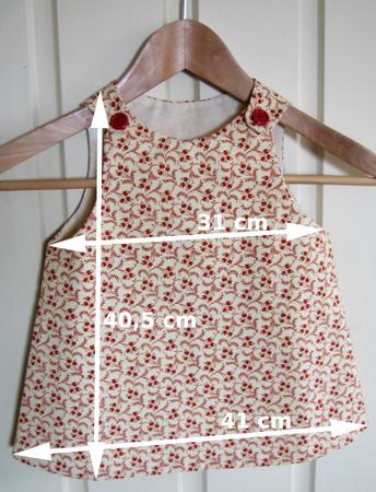 Legg merke til målene jeg har skrevet på hver kjole hvis du er usikker på passformen. Denne kjolen er av de minste jeg lager.