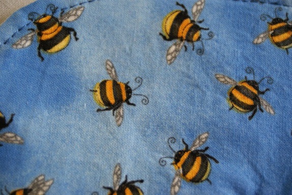 Farge i front: Blå med motiv av humler.