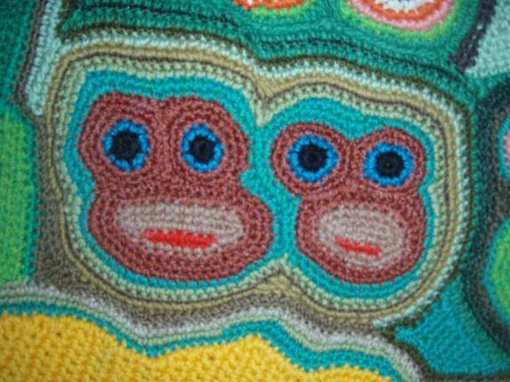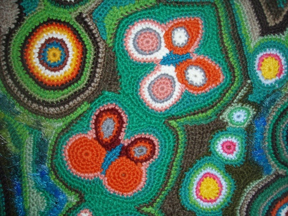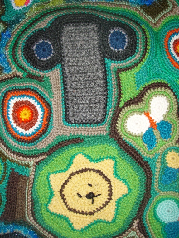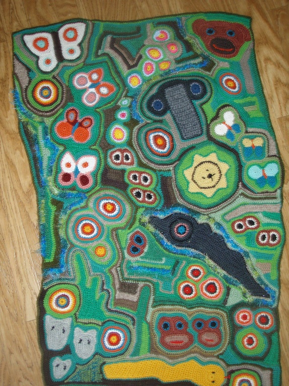 Teppet er laget i frihekling, det er derfor ikke helt firkantet.