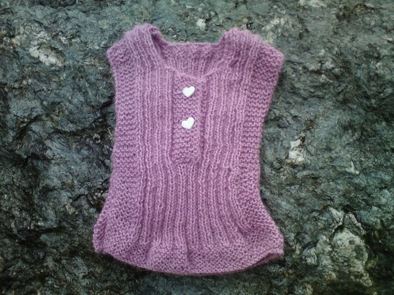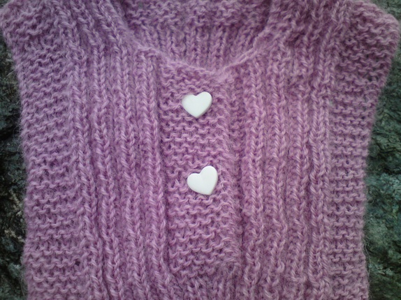 Undertrøye/vest strikka i deilig mjuk alpakka, med to søte hjerteknappar til lukking.
