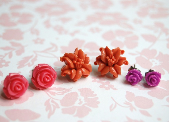 3 par nydelige øredobber på stift av kirurgisk stål.ca 0.7 1.1 og 1.5 cm