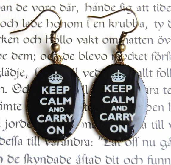 Et par antikkgullfargede øredobber.Epoxi på plate. MessingHele øredobben måler 4.4 cm.