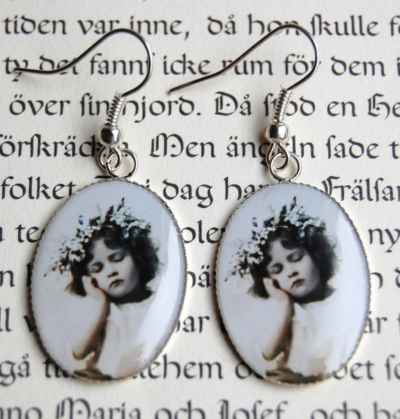 Et par sølvfargede øredobber.Epoxi på plate. Hele øredobben måler 4.4 cm.Little Shop Of Wonder
