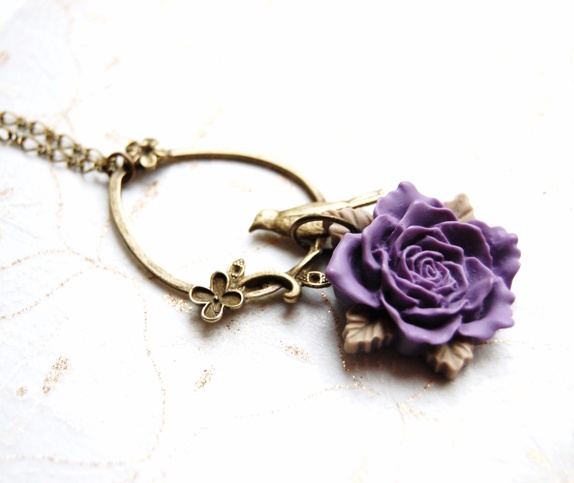 Antikkgull kjede med nøkkel og stor luciteblomst.Lengden på lenken er ca 70 cm lang.Lengden på annhenget er 8.5 cm.