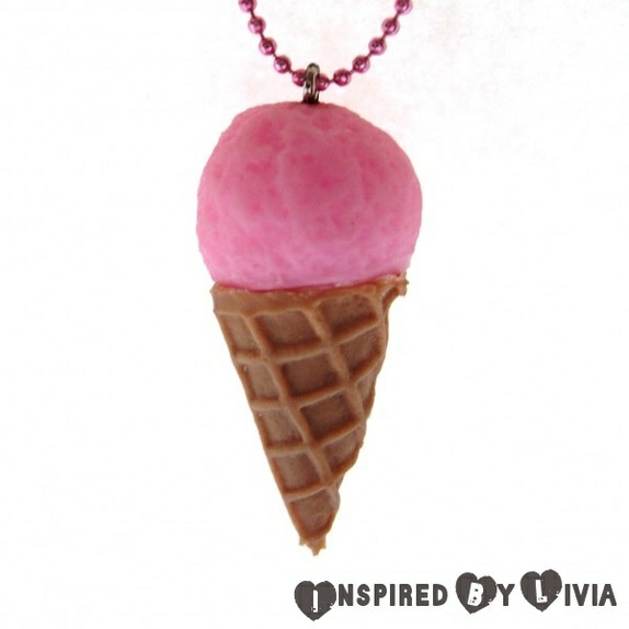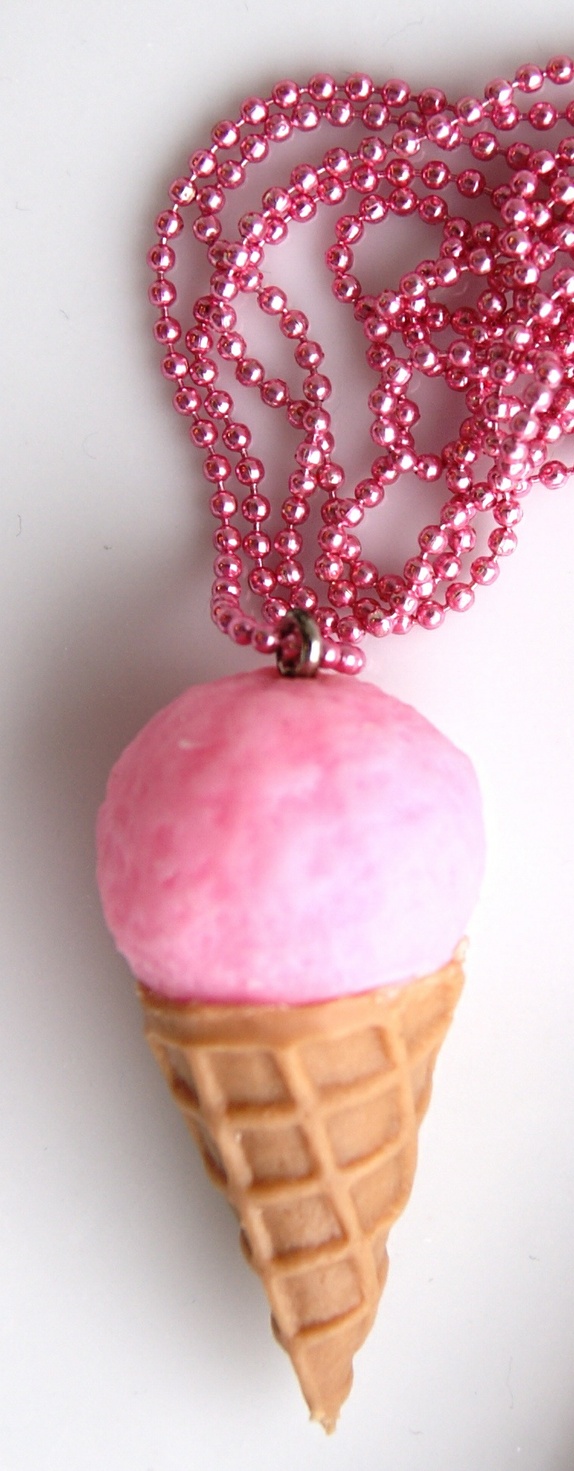 Rosa iskrem-smykke med langt rosa kulekjede. Kan enkelt lages kortere. Kjedet er nikkel- og blyfritt.