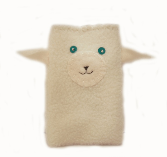 dette søte etuiet for iphone/mobiler sydd i mykt litt fluffy stoff,foret med offwite filtmåler 8 x12,5 cm