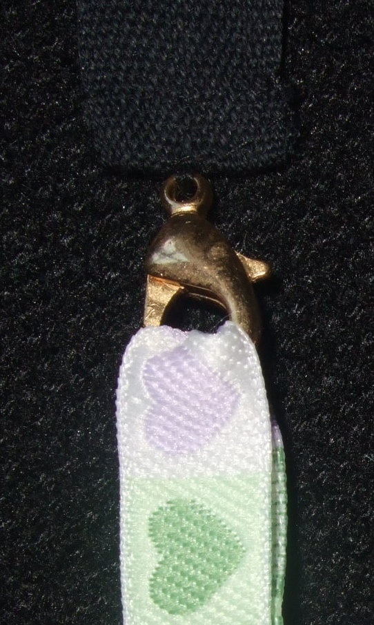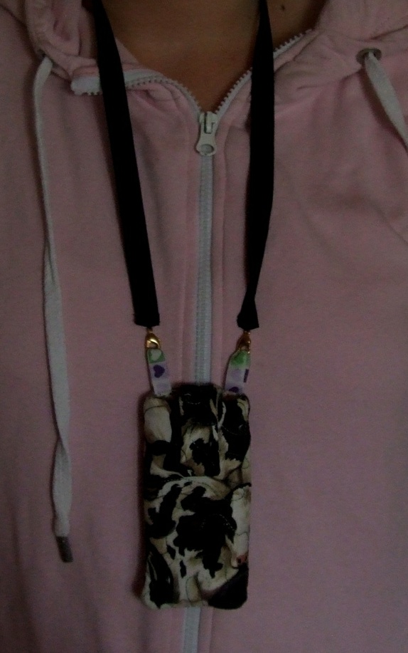 Etuiet har en avtagbar bomullssnor som festes med små karabinkroker.