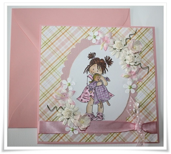 Kortet er i 13x13 str og levers med farget konvulutt som på bilder. Dette kortet er kun dekorert på forsidenstemplet er malt med hånd
