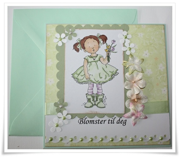 Kortet er i 13x13 str og levers med farget konvulutt som på bilder. Dette kortet er kun dekorert på forsidenstemplet er malt med hånd