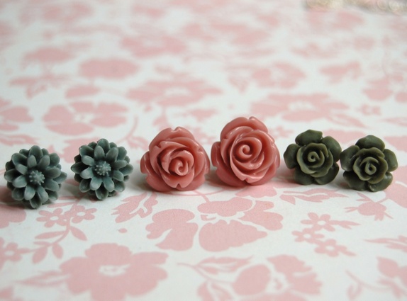3 par nydelige øredobber på stift av kirurgisk stål.ca 1.2, 1.2 og 1.5 cm