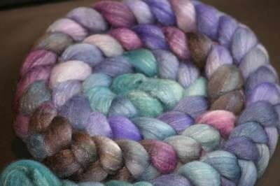 80%merino/20%tussahsilke for spinning eller filting. to like på tilsammen 230 gram selges samlet.