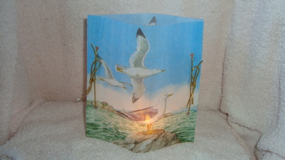 Sett skjermen over et kjøkkenglass med ett telys oppi.