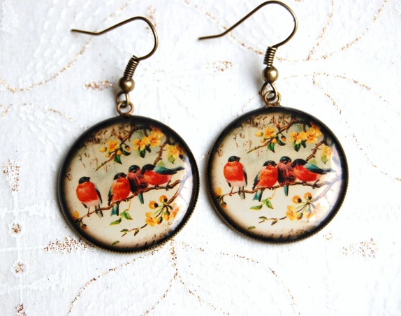 Et par antikkgullfargede messing øredobber.Epoxi på plate. Hele øredobben måler 4.3 cm.