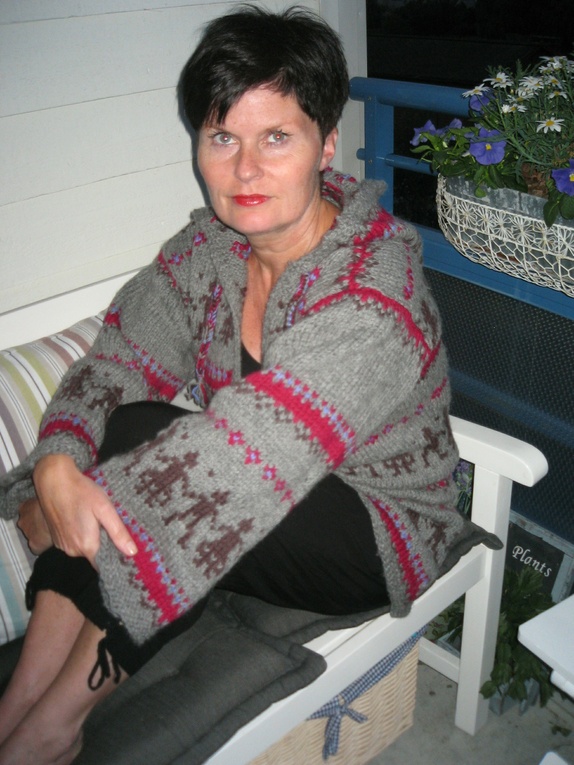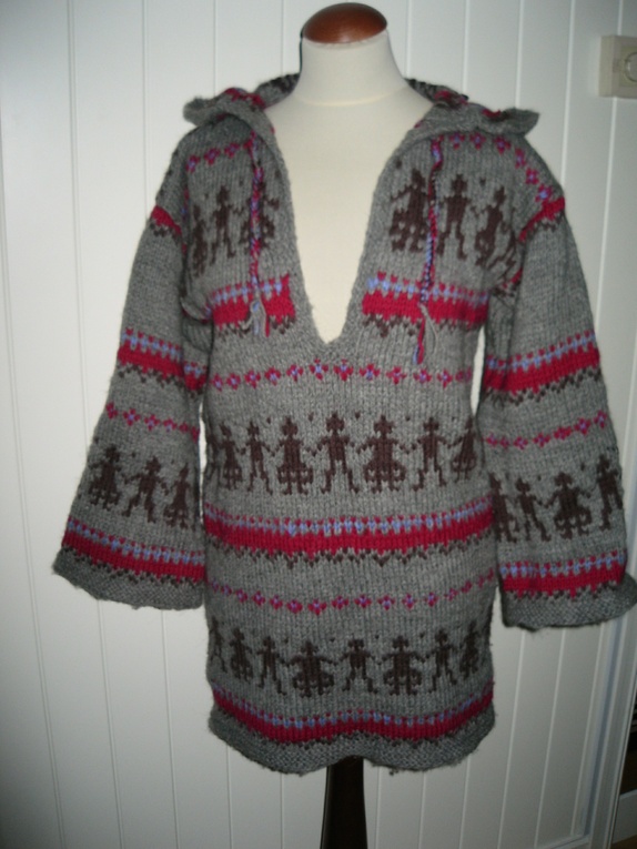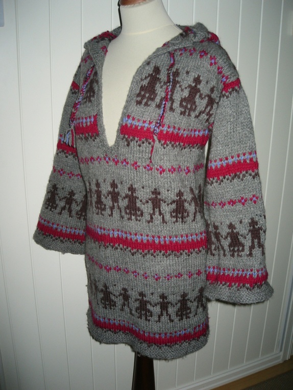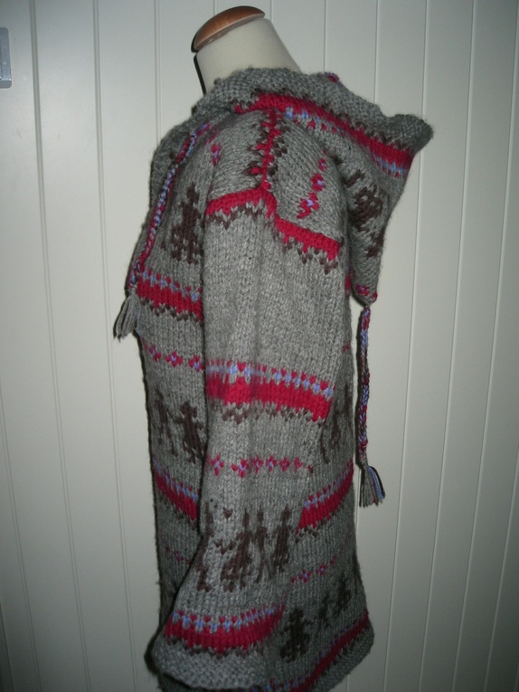 Nå kun 1090,- Håndlaget! Strikket anorakk med hette i ull, str Small. Kan bestilles i andre str. og andre farger