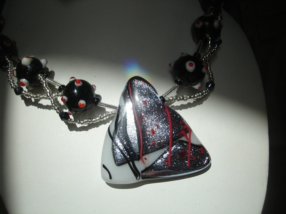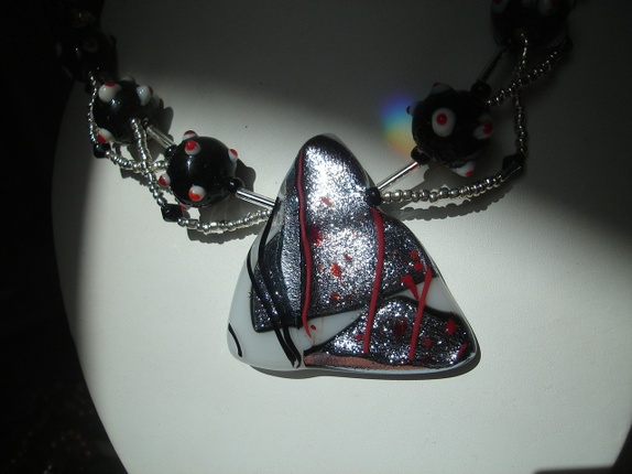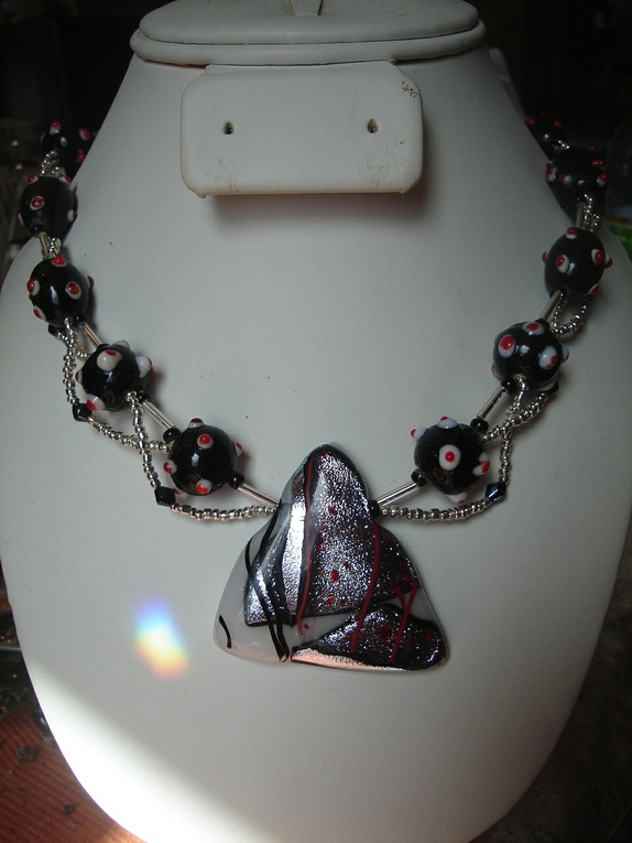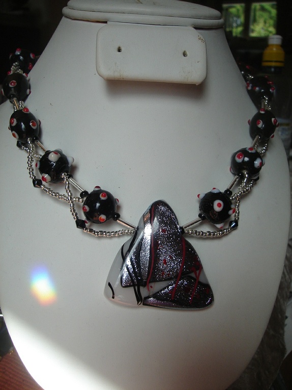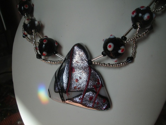 Jeg bruker glass, krystaller, ferskvannsperler, skjell, dichroic-glass, håndlagde perler og sead-beads, kinesiske glassperler, folierte glassperler m.m. De fleste smykker har regulerbare låser. Øredobbene har ekte sølvkroker, eller de er nikkelfrie.