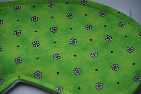 Farge i front: Grønn med motiv av søte hvite blomster og svarte prikker.