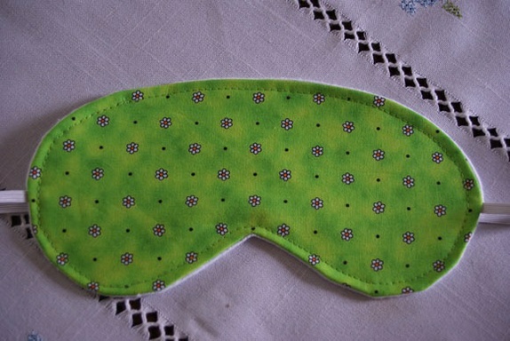 Festes med hvit flat strikk slik at masken sitter på plass.