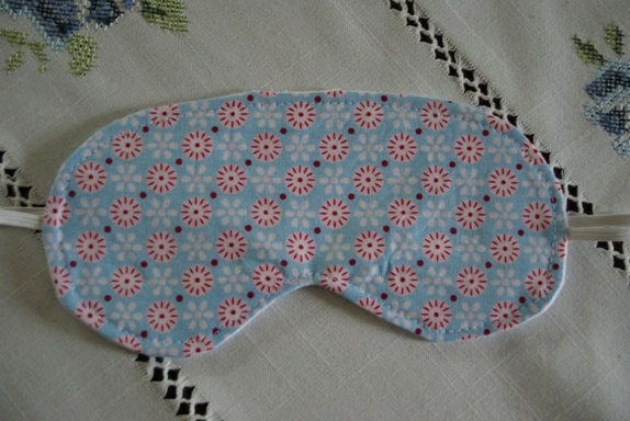 Festes med hvit flat strikk slik at masken sitter på plass.